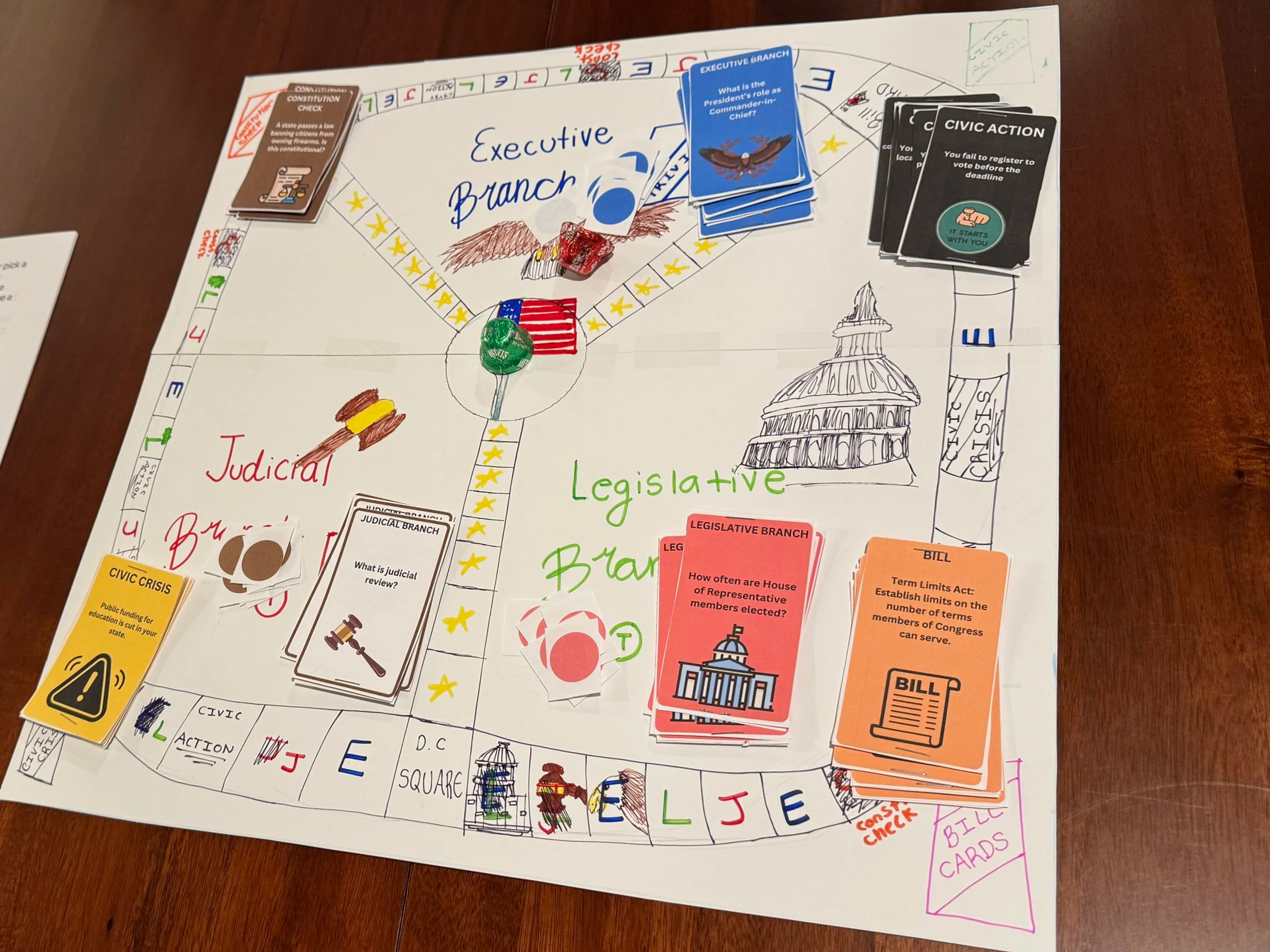 I thought back to the alarming civic illiteracy statistic I’d read just a few days earlier, and that’s when it hit me: What if I created a board game to make civic literacy more equitable and accessible to everyone?